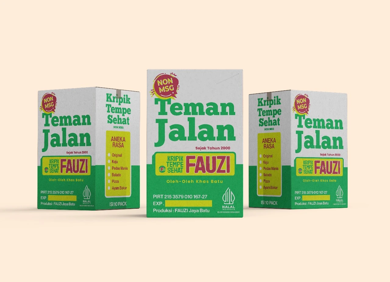 Berawal dari industri rumah tangga di Kota Batu, Kripik Tempe FAUZI berdiri sejak tahun 2000 sebagai salah satu pelopor oleh-oleh khas Batu. Terbuat dari tempe pilihan, kaya protein nabati dan serat, dengan cita rasa gurih dan renyah dari bumbu dapur rumahan serta tanpa MSG. Kami juga menghadirkan Kripik Tempe OKE, yang menggunakan MSG dalam jumlah terbatas untuk memberikan rasa gurih yang khas. Tersedia berbagai varian rasa yang cocok dinikmati sebagai oleh-oleh maupun camilan harian.